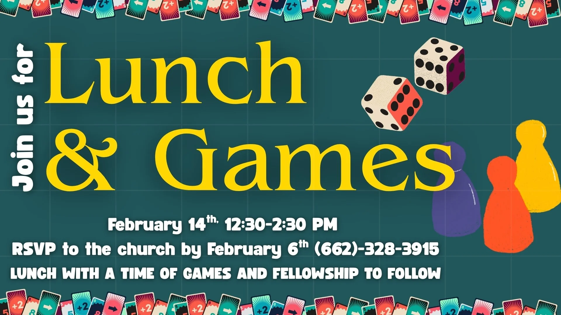 Widows and widowers, we are excited to announce that our youth will be hosting a lunch and Game day here at the church! if your intrested or have questions, you can contact Amy Perkins at the front desk or Wilson Logan. RSVP by February 6th